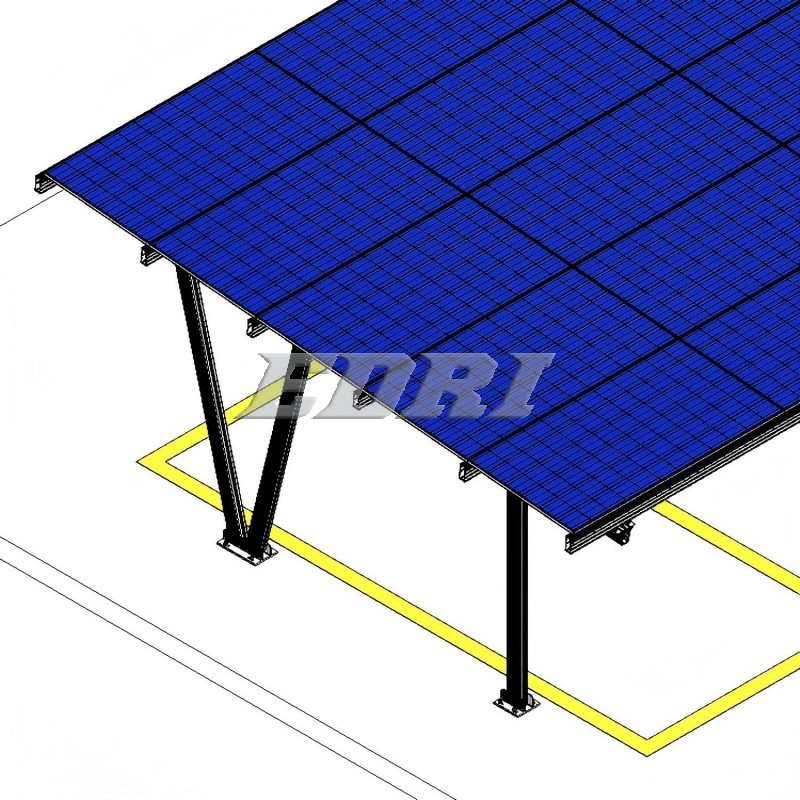 The Aluminum Carport IV Mounting System is designed for PV array installations in open field environments. Made from 100% aluminum, it is suitable for mounting on concrete strip foundations or ground screws. This system is lightweight, yet strong, combining durability with a sleek, modern design.