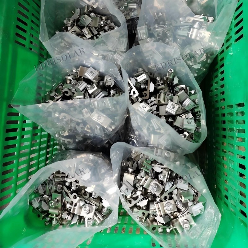 The photovoltaic grounding component ensures reliable electrical grounding for solar panels, enhancing system safety and performance. It securely connects to the solar mounting rail, providing protection against electrical faults and ensuring compliance with safety standards.