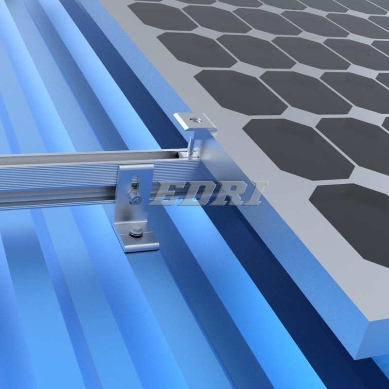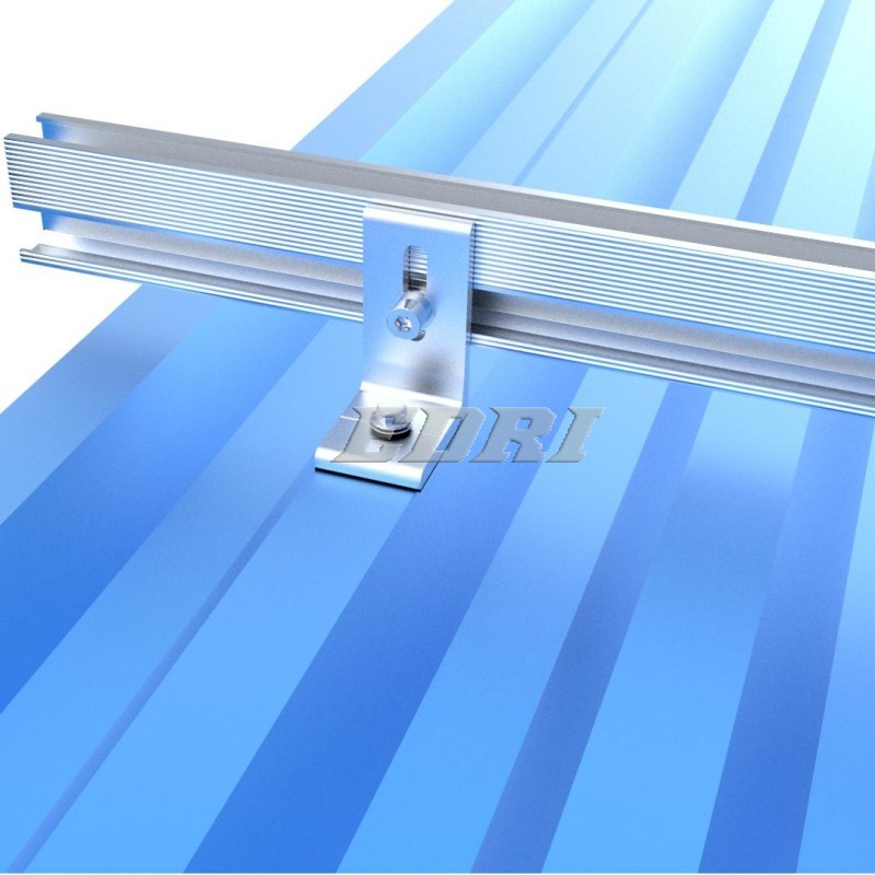 A common and durable mounting solution for trapezoidal or corrugated metal roofs.